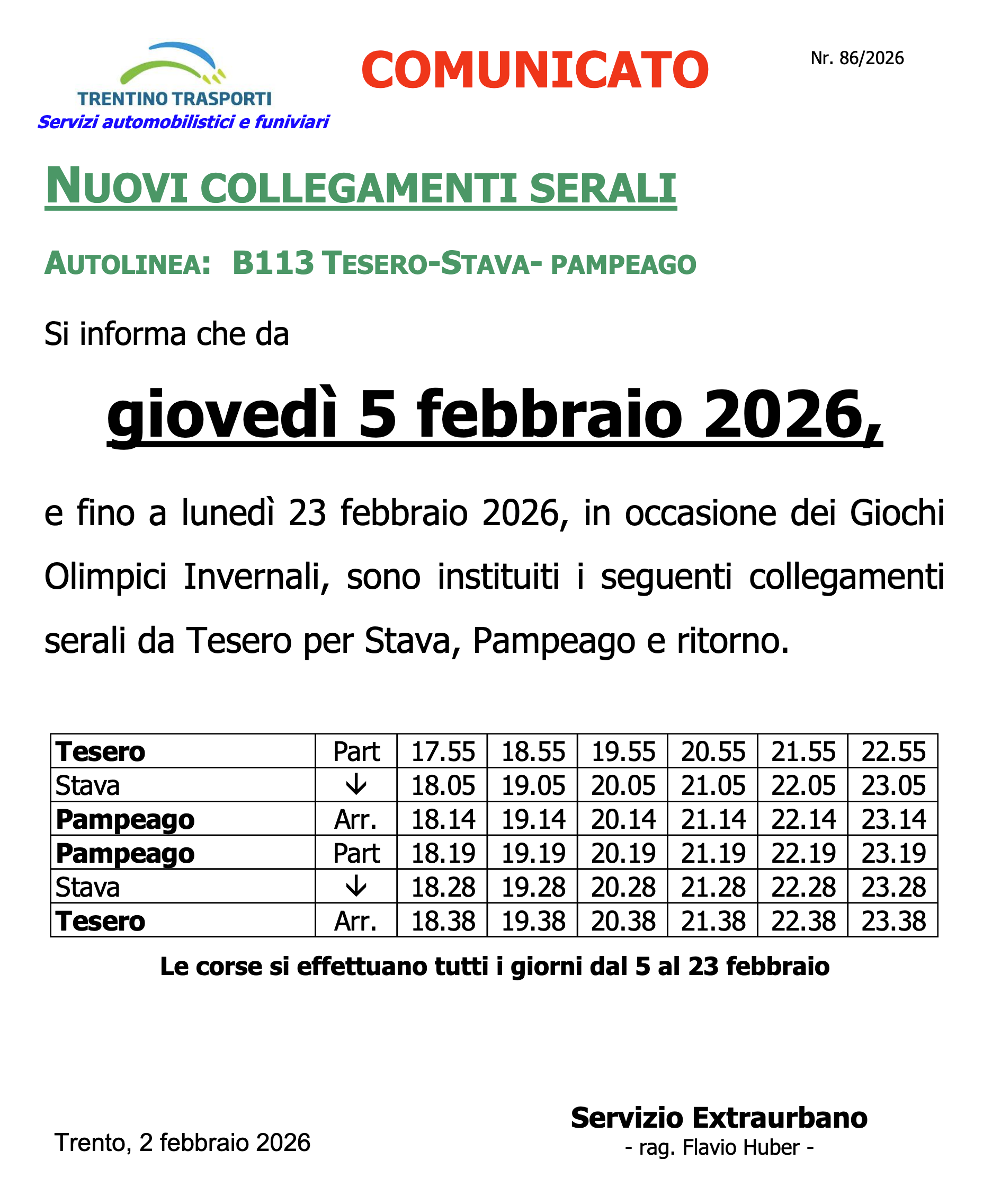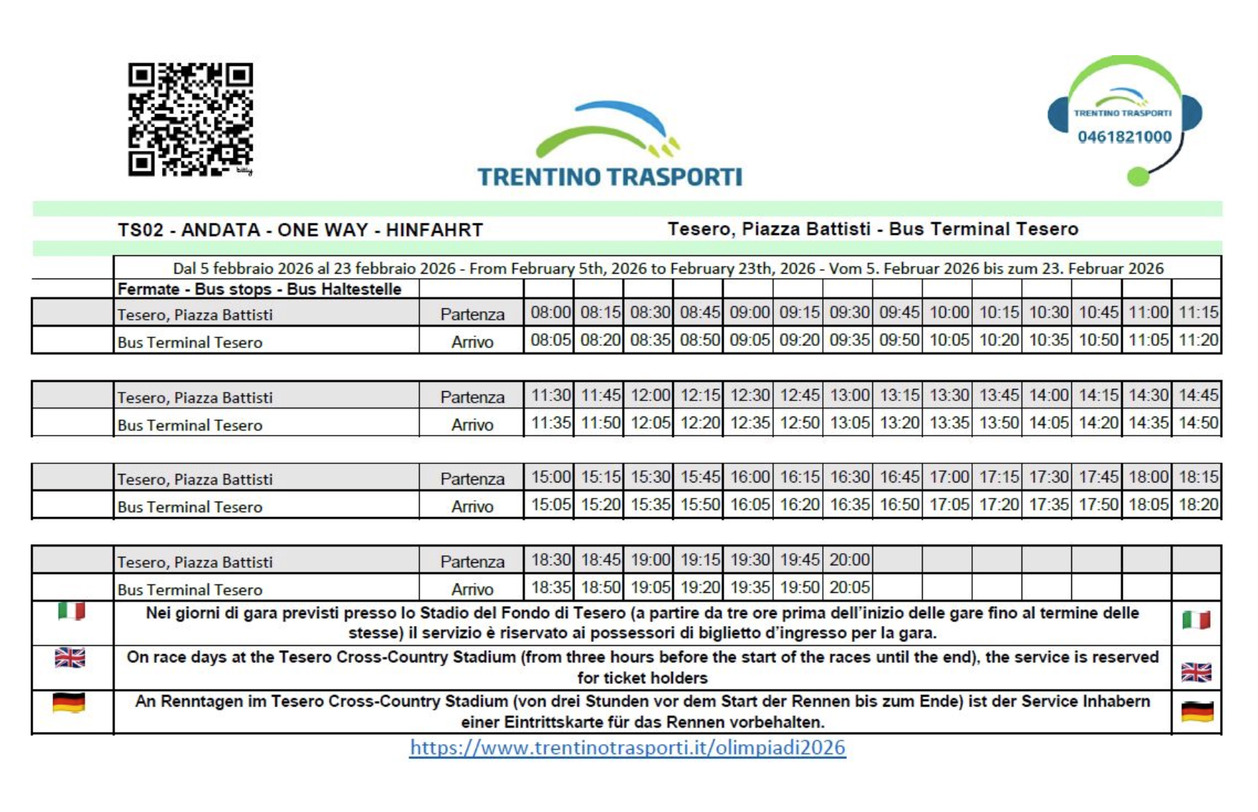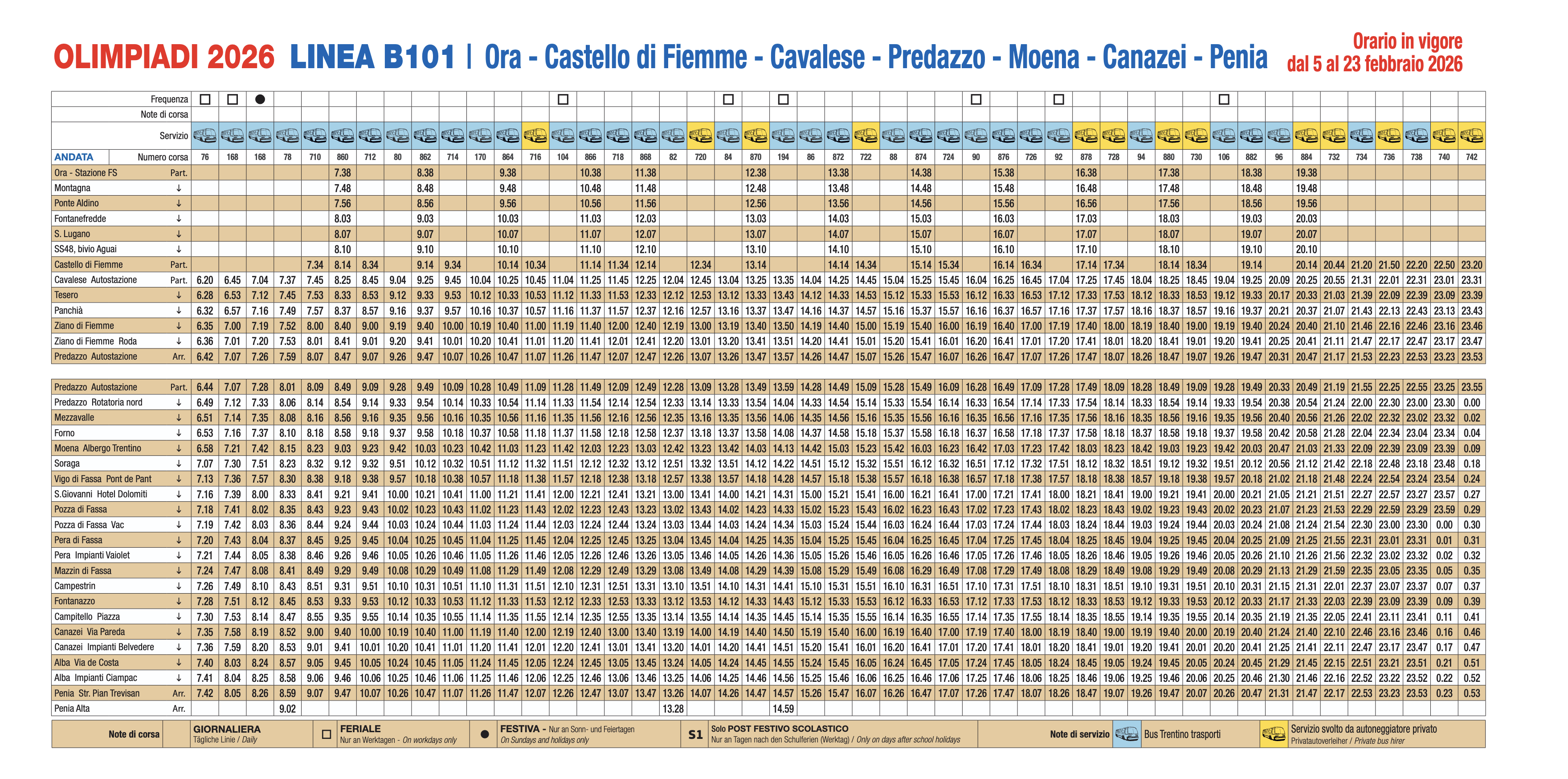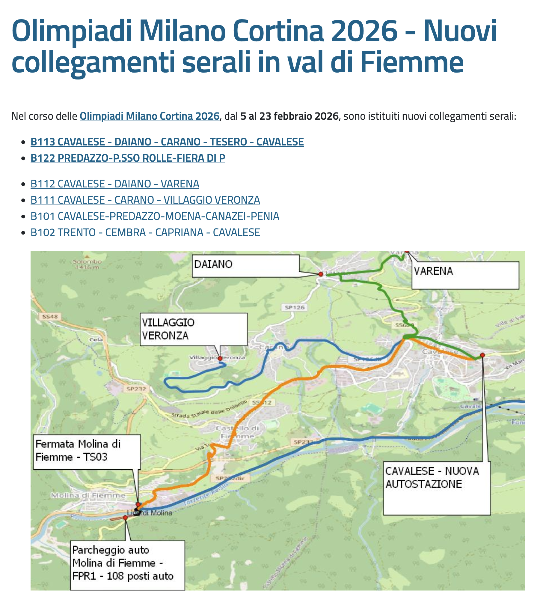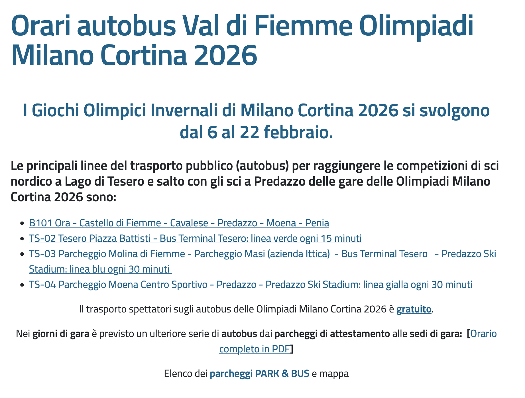 Comunque, prendo il primo, Orari autobus Val di Fiemme Olimpiadi Milano Cortina 2026.
