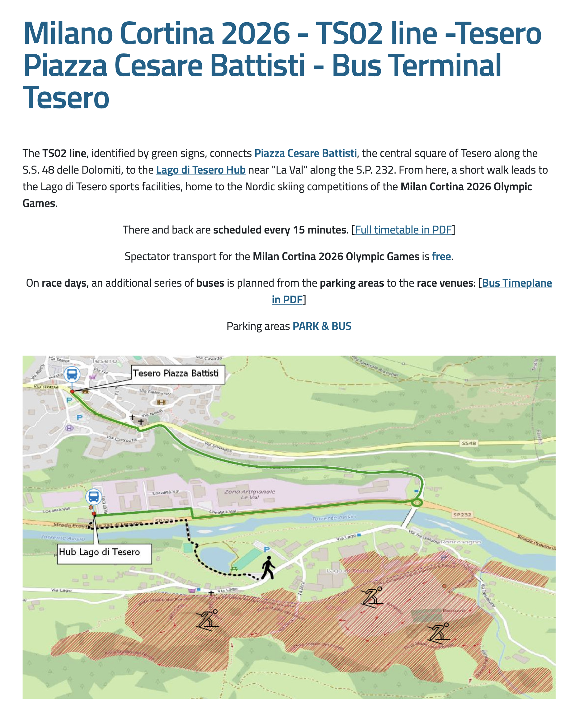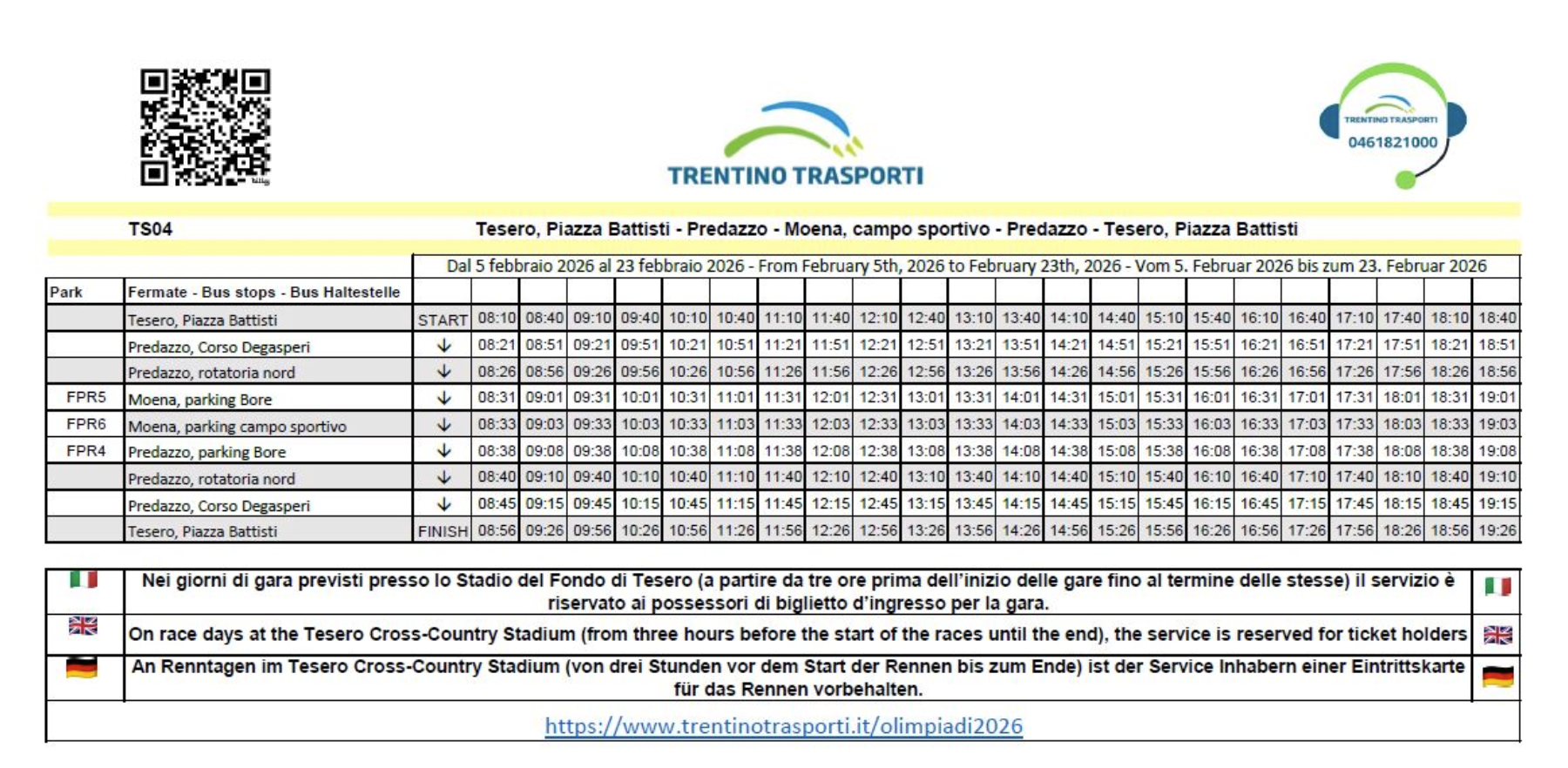 Trentino Trasporti ha poi pubblicato una sezione dedicata del sito, tra l’altro rinnovato da poco, per illustrare le linee di autobus che si possono usare per raggiungere i luoghi delle gare.